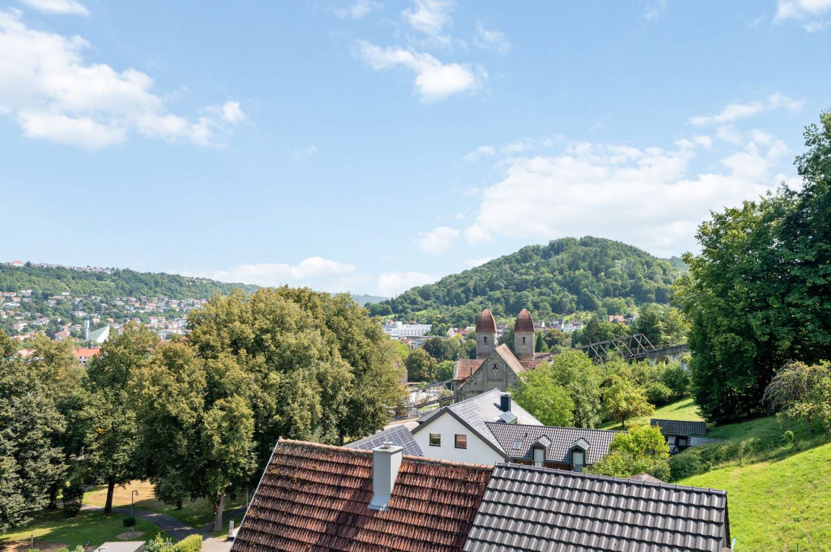 Wir enden unseren Rundgang am Wertwiesenpark, einer großen Grünanlage direkt am Kocher mit Spielplätzen, Wiesen, Grillstellen, Freibad und Sportplätzen. Im Sommer finden hier Open-Air-Veranstaltungen statt, zum Beispiel Kino oder Konzerte.