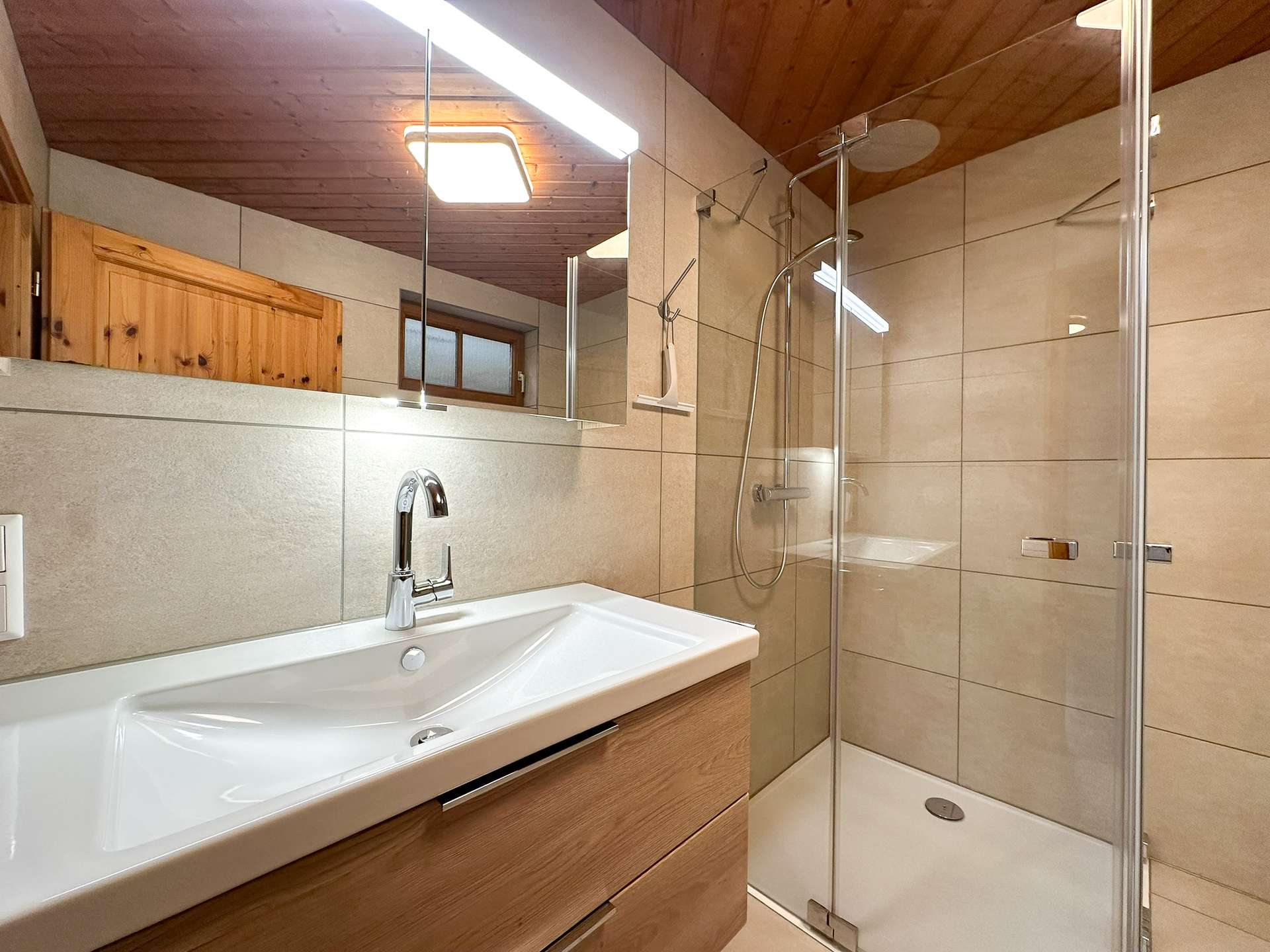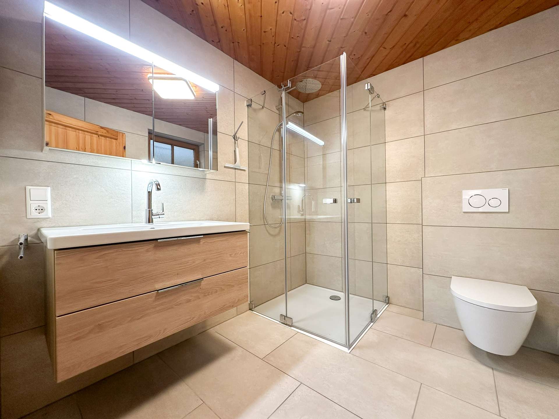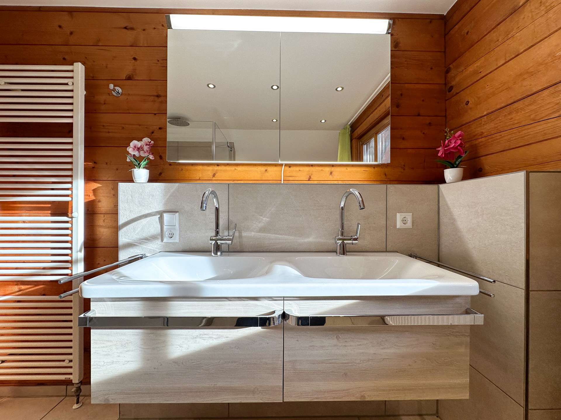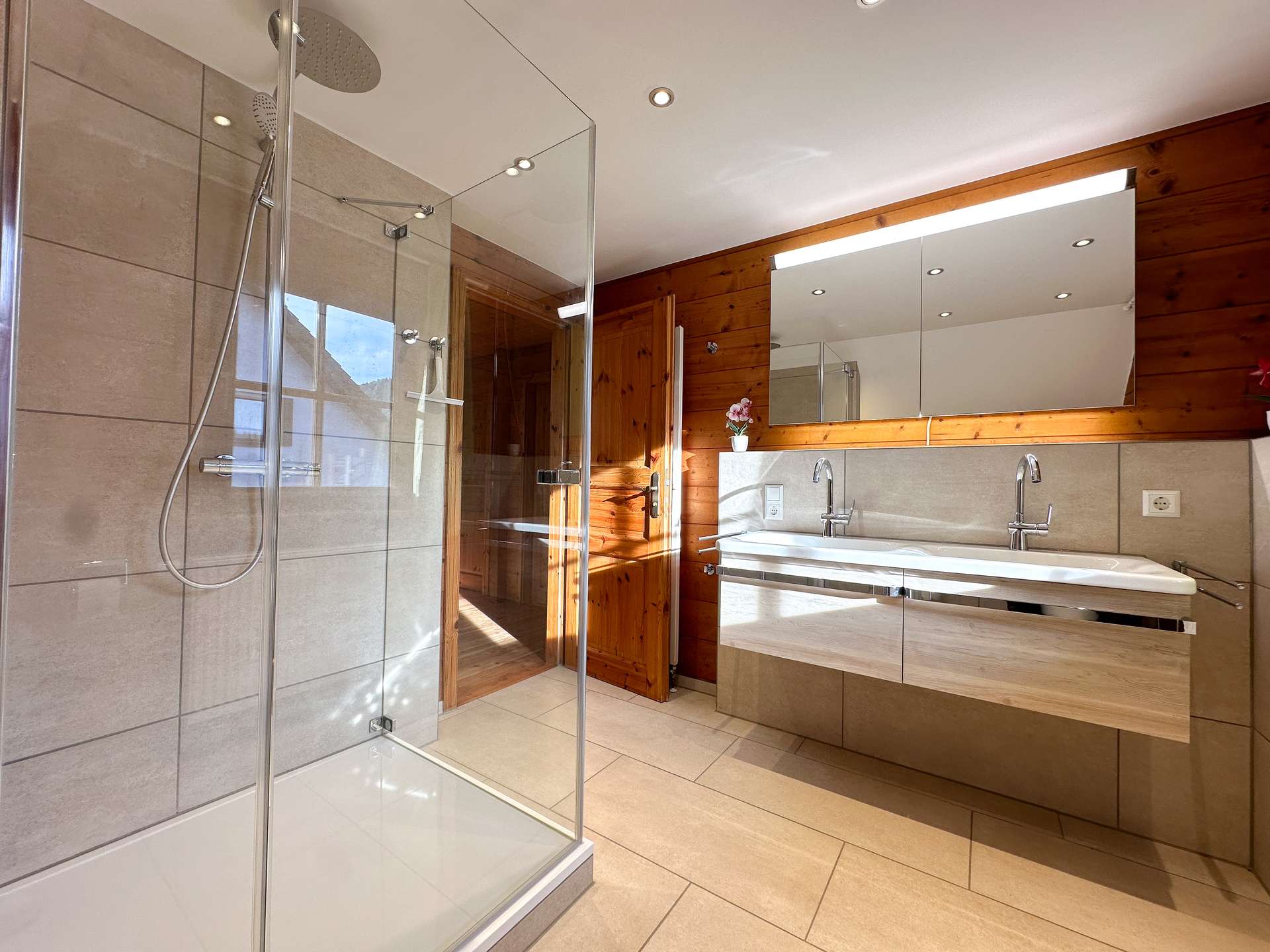 In den zwei modernen Badezimmern und der Gäste-Toilette erwartet Sie ein frisches, zeitloses Design, das im Jahr 2024 komplett modernisiert wurde. Edle Materialien und eine hochwertige Ausstattung machen jeden Start in den Tag zu einem Genuss.