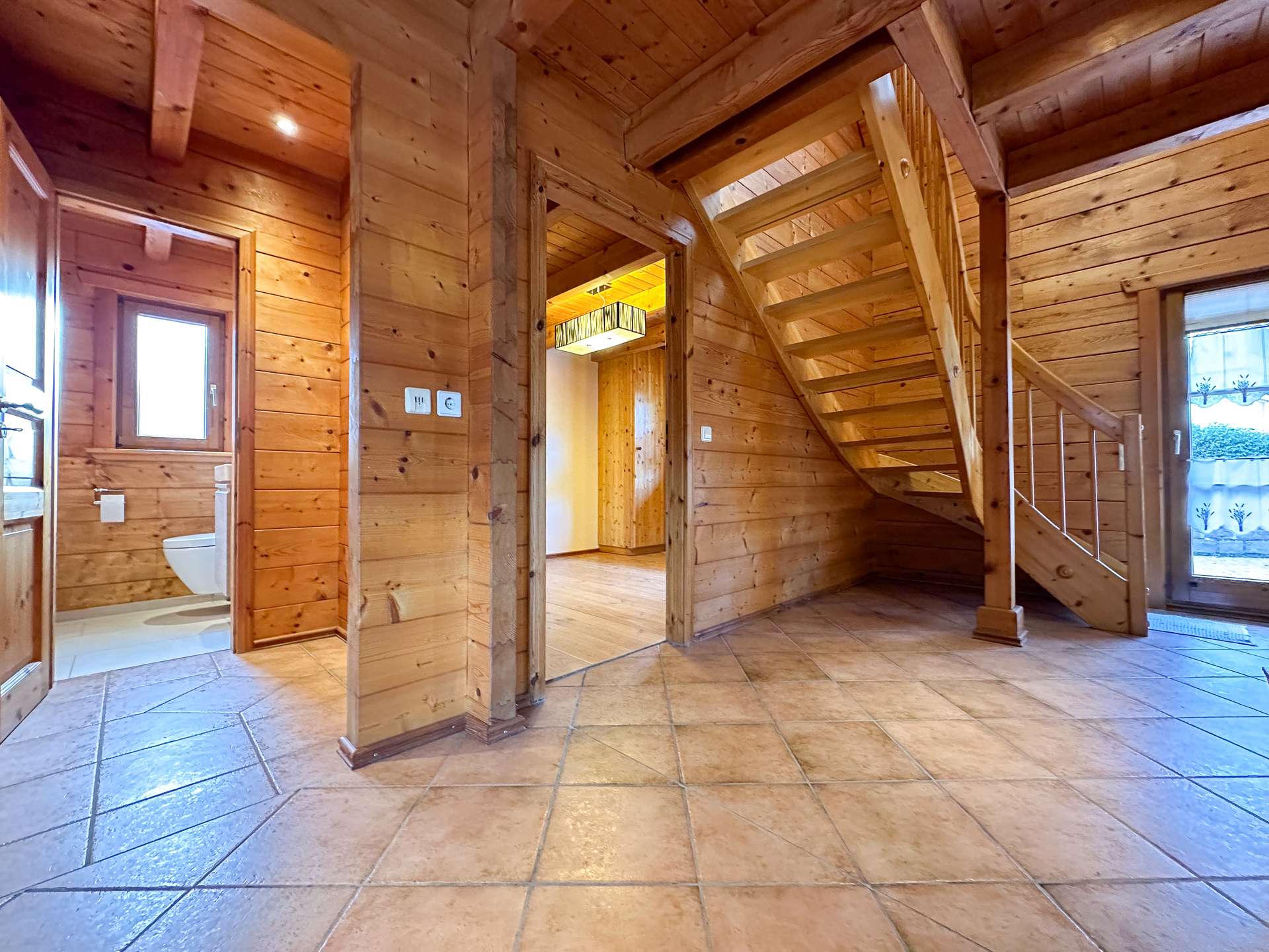 Dieses charmante Blockhaus vereint rustikale Gemütlichkeit mit modernem Wohnkomfort und bietet auf großzügigen 7 Zimmern ein einzigartiges Wohnambiente. Die Immobilie verfügt über 4 Schlafzimmer und eine separate Einliegerwohnung, die vielfältige Nutzungsmöglichkeiten bietet – ob als Rückzugsort für Gäste, Büro oder als Vermietungseinheit.