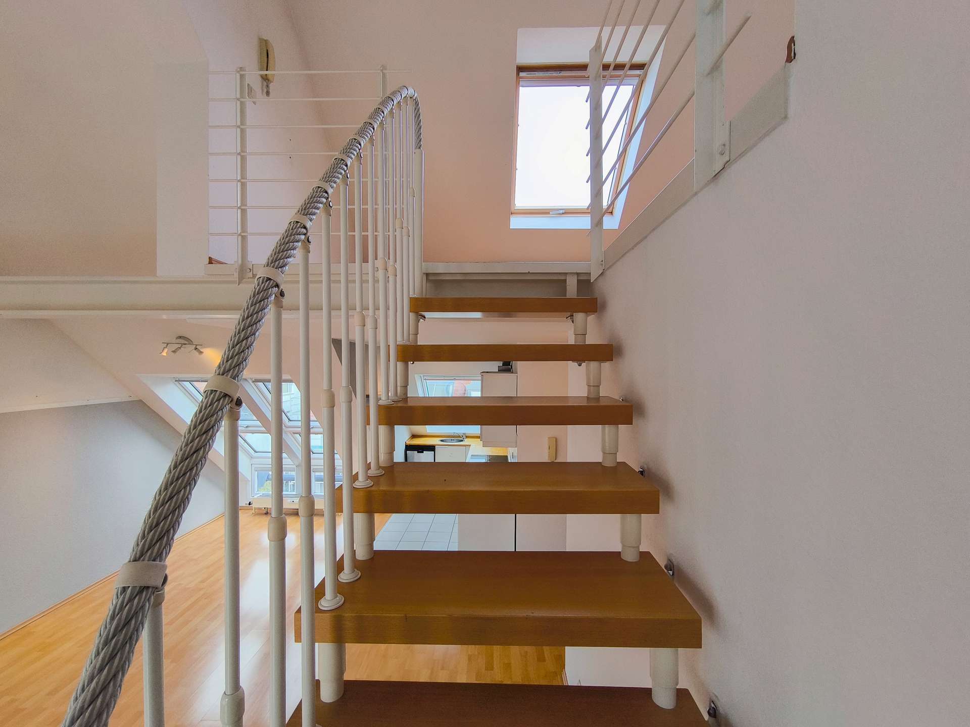 Im oberen Bereich der Maisonette befindet sich eine Galerie, die zusätzlichen Raum für kreative Nutzungsmöglichkeiten bietet – sei es als Arbeitsbereich, Leseecke oder für andere individuelle Wünsche.