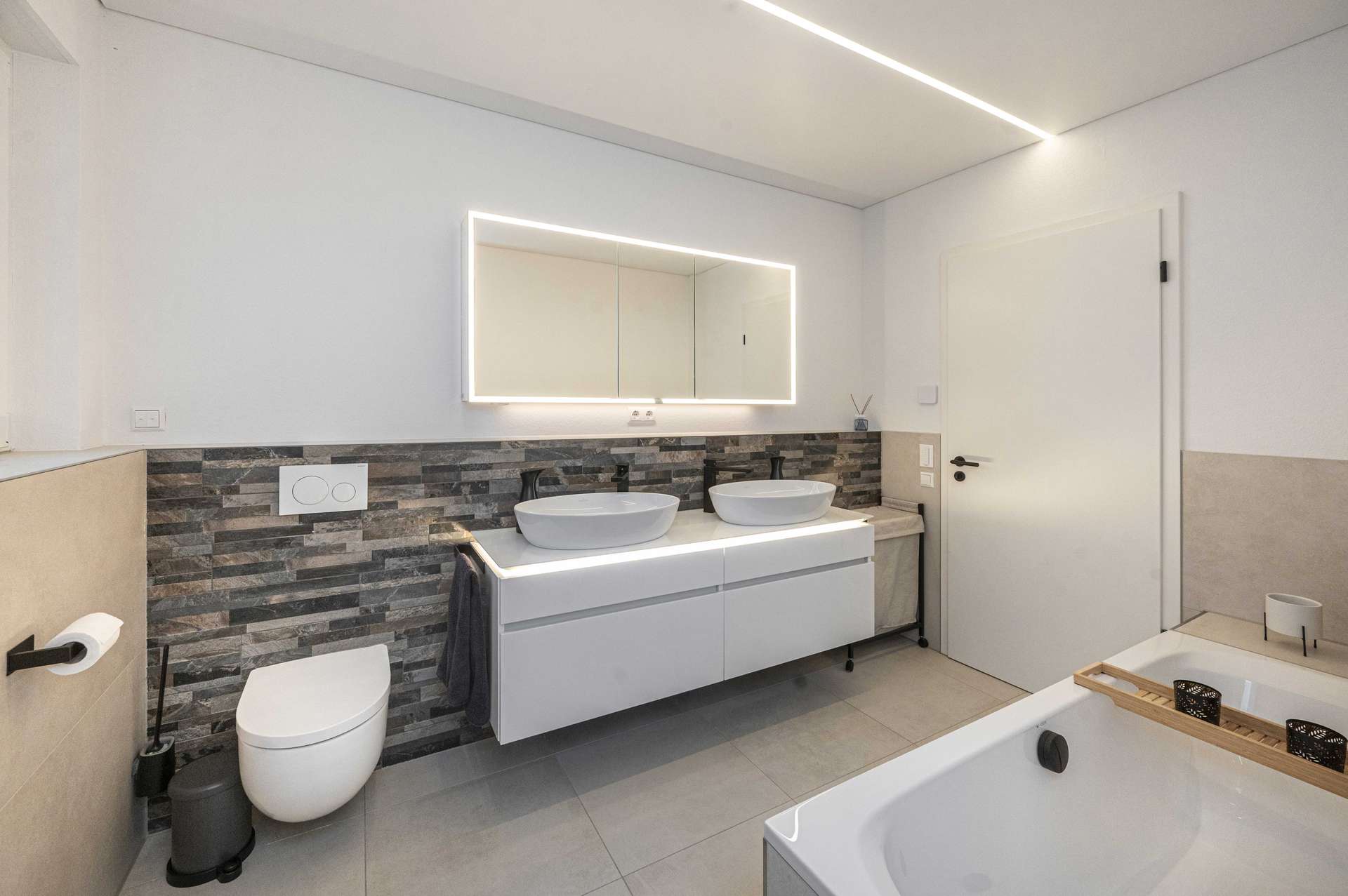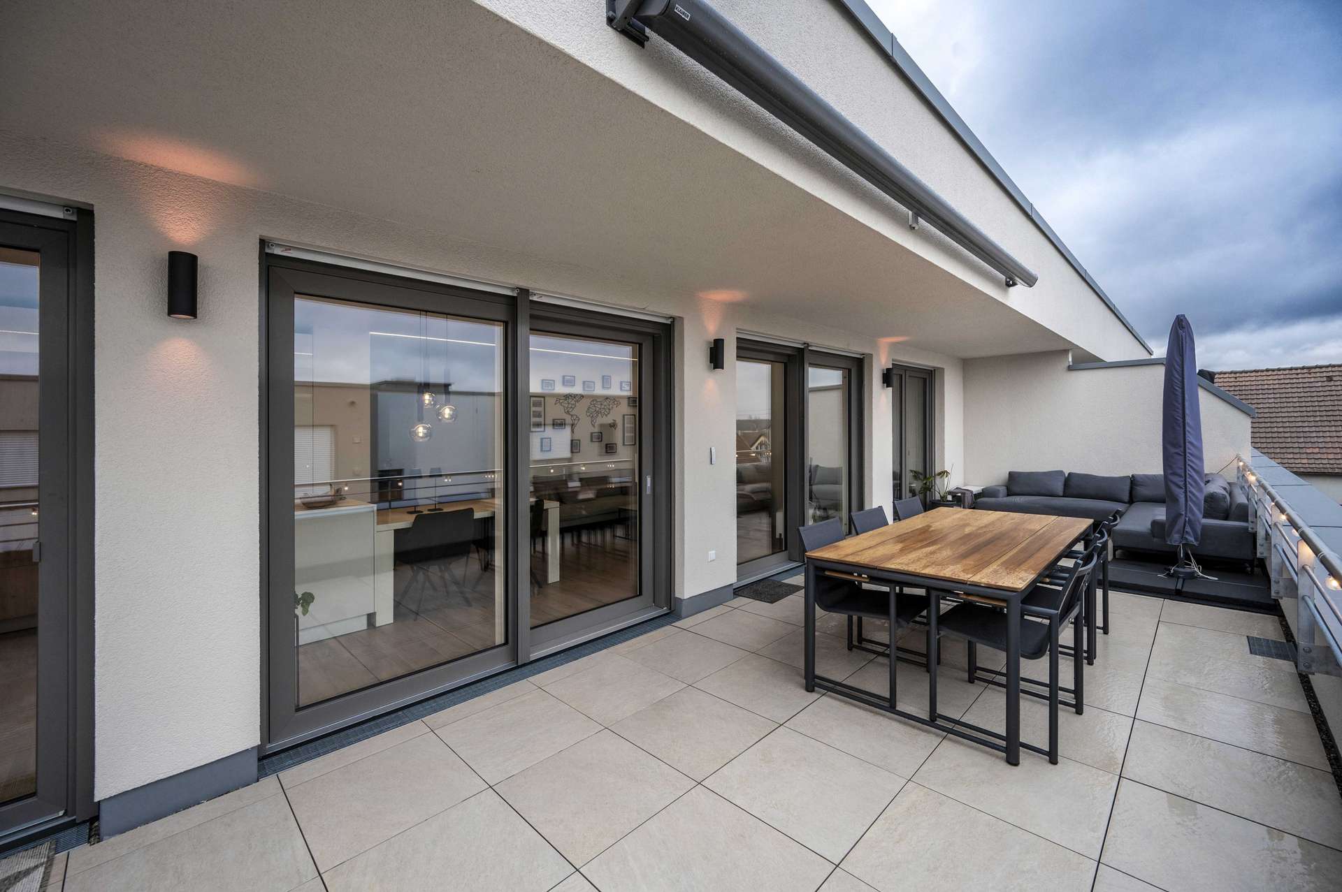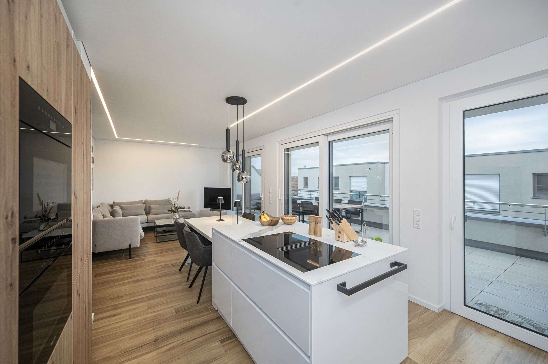 Mit dieser Immobilie erwerben Sie ein hochwertiges Penthouse, das durch seine moderne Ausstattung und die attraktive Lage in Erligheim überzeugt. Nach der Fertigstellung des Neubauprojektes, wurde die Immobilie durch den Eigentümer mit weiterem Kapitaleinsatz auf eine noch höhere Qualität und einen noch höheren Standart gehoben. Zum Beispiel die Spanndecke mit LED-Lichtstreifen wurde angebracht. Welche tollen und innovative Gadgets die Wohnung noch für Sie bereit hält, zeigen wir Ihnen gerne bei der Besichtigung.