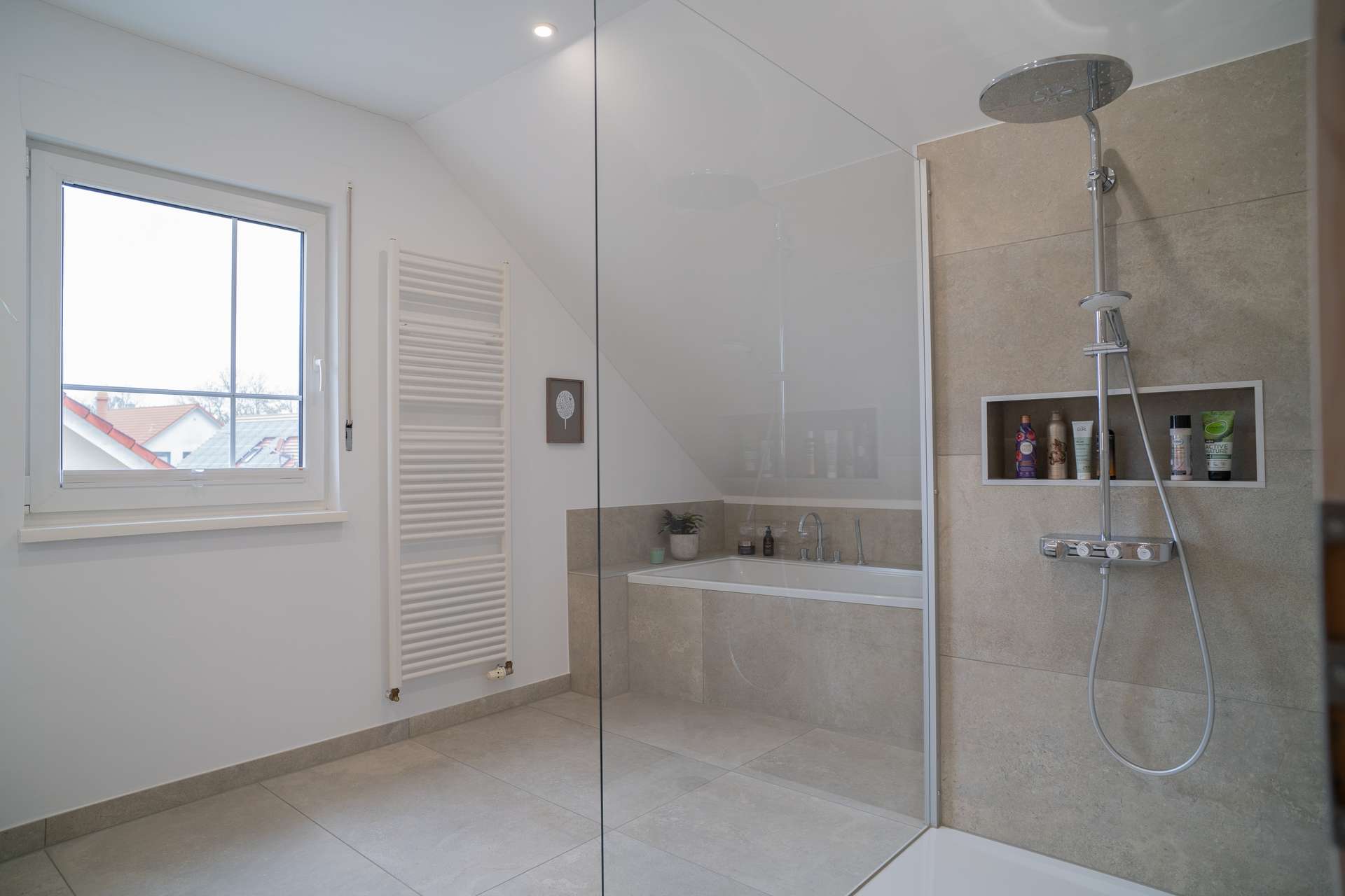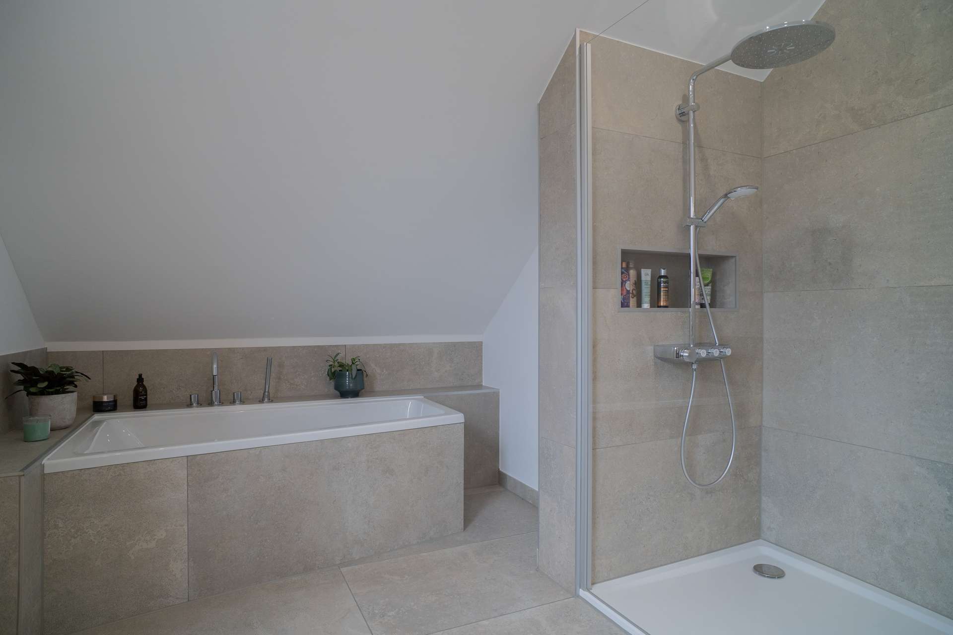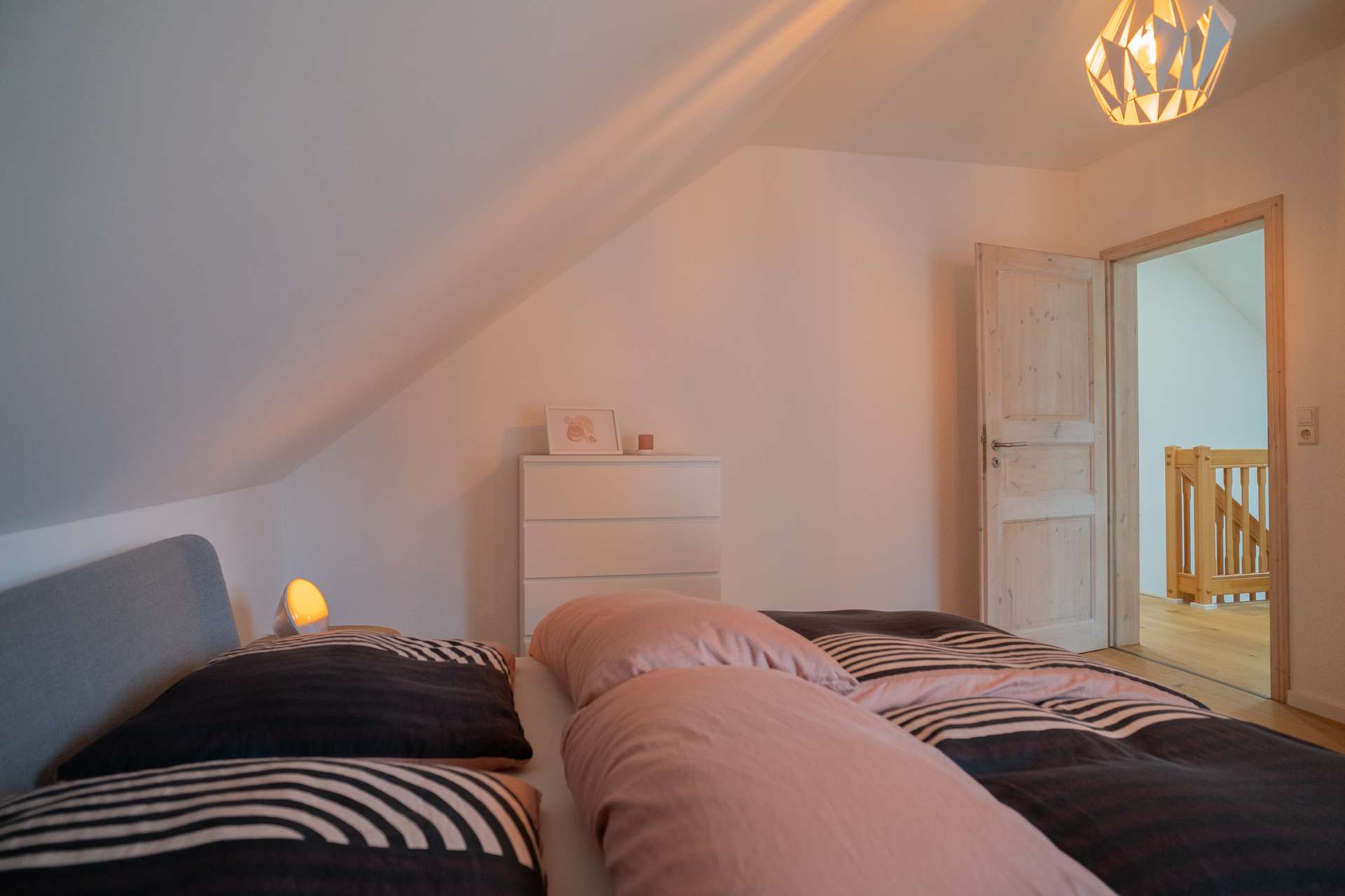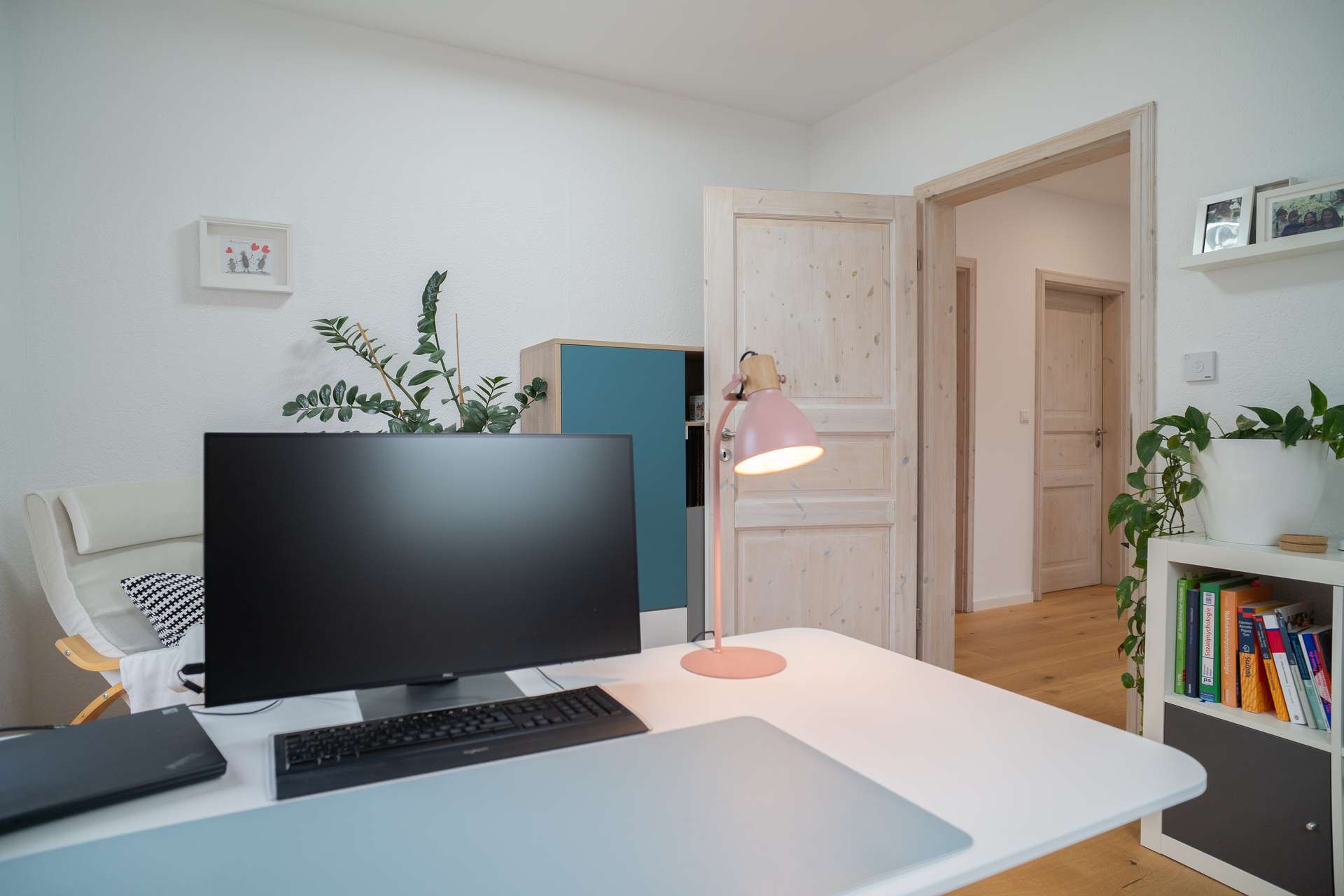 Im Dachgeschoss, das 2023 komplett renoviert wurde, erwarten Sie drei helle Räume, die flexibel als Schlafzimmer, Kinderzimmer und Büro genutzt werden können. Neue Velux‑Dachfenster mit Solarrollladen fluten zusätzlich die Räume mit Licht und sorgen für ein angenehmes Wohngefühl. Das große Tageslichtbad aus 2024 beeindruckt mit Unterputzarmaturen an Waschbecken und Badewanne sowie großzügiger Regendusche. Vom Schlafzimmer und dem Büro gelangen Sie direkt auf den Balkon – ein perfekter Ort, um den Tag bei Sonnenaufgang zu beginnen.