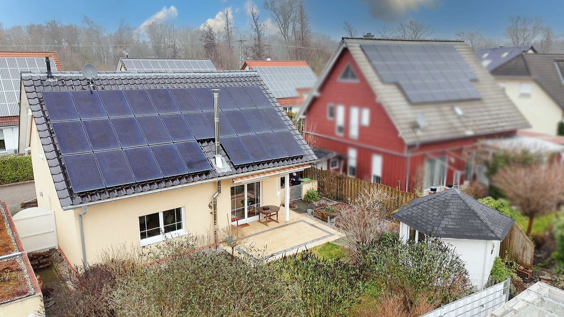 Die Photovoltaikanlage unterstreicht die moderne Energieeffizienz des Hauses. Hochwertige Bodenbeläge aus Granit, Parkett und Feinsteinfliesen, vollständig gedämmtes Dach sowie Kunststoff‑Sprossenfenster komplettieren die gehobene Ausstattung. Drei Außenstellplätze (inklusive Wallbox) und eine Garage mit elektrischem Tor bieten zusätzlichen Komfort.