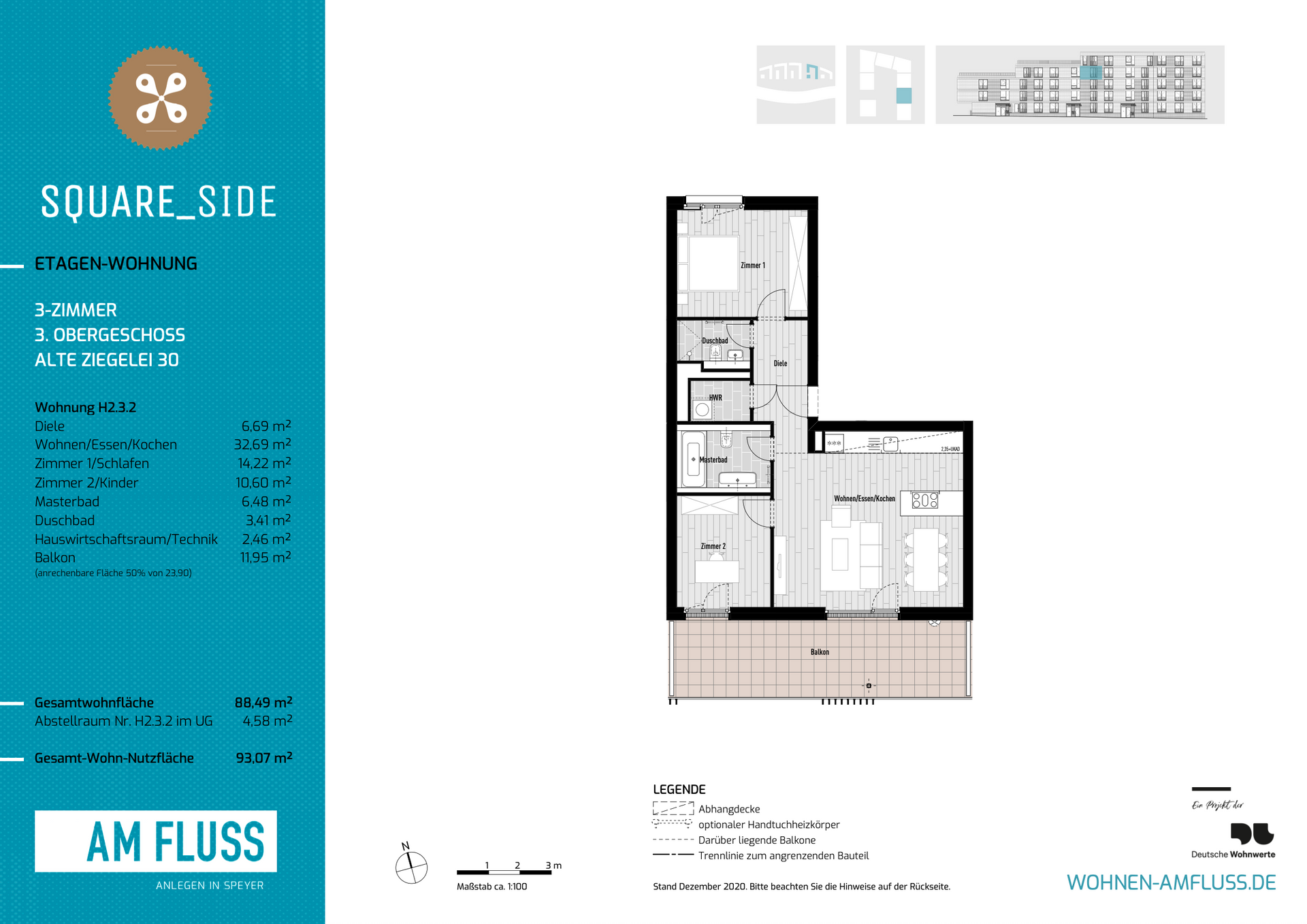 Die Wohnung befindet sich im modernen Wohnquartier „Am Fluss“ (Alte Ziegelei) in Speyer, nur wenige Schritte von der Rheinpromenade entfernt. Die direkte Nähe zum Wasser bietet einen hohen Freizeit- und Erholungswert und sorgt für einen idealen Ausgleich zum Alltag.